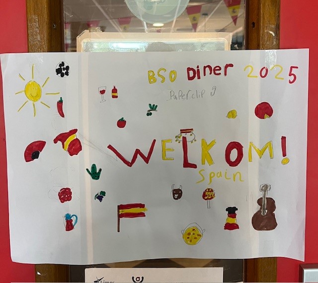 Het was de afgelopen 2 vrijdagen weer tijd voor het jaarlijkse BSO diner. Op vrijdag 26 september was de Paperclip aan de beurt en op vrijdag 3 oktober was het de beurt aan de Apenkooi. Dit jaar stonden de diners in het teken van het thema Spanje. De BSO’s waren weer leuk versierd en op verschillende plekken was het thema goed te herkennen. Vanuit de BSO was er gezorgd voor lekkere paella, albondigas (Spaanse gehaktballetjes in tomatensaus), pan con tomate (een stokbroodje met tomaat) en uiteraard kon ook de alcoholvrije sangria niet ontbreken.